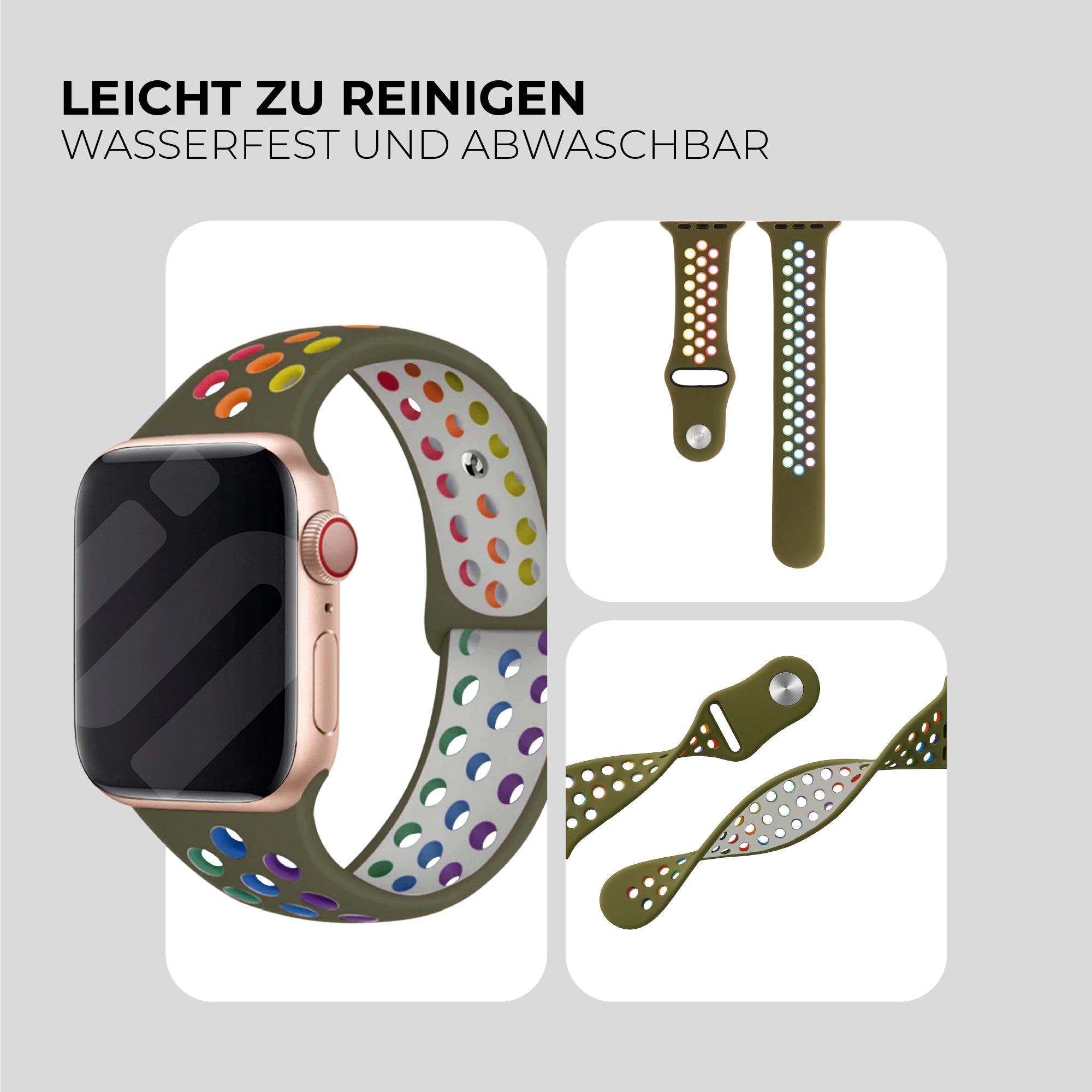 Apple Watch Sportarmband (Oliv/Regenbogen)