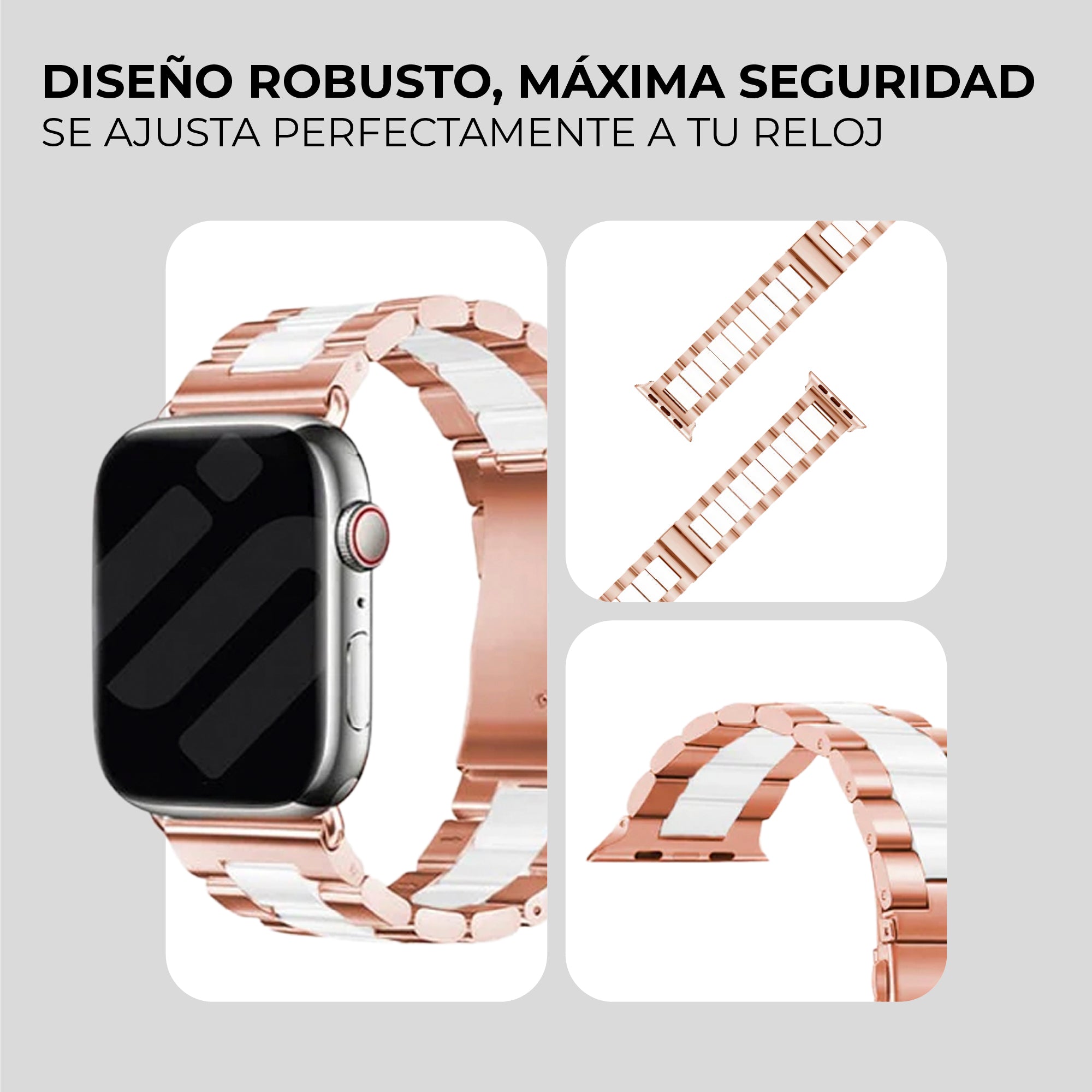 Correa acero Apple Watch (oro rosa/blanco)