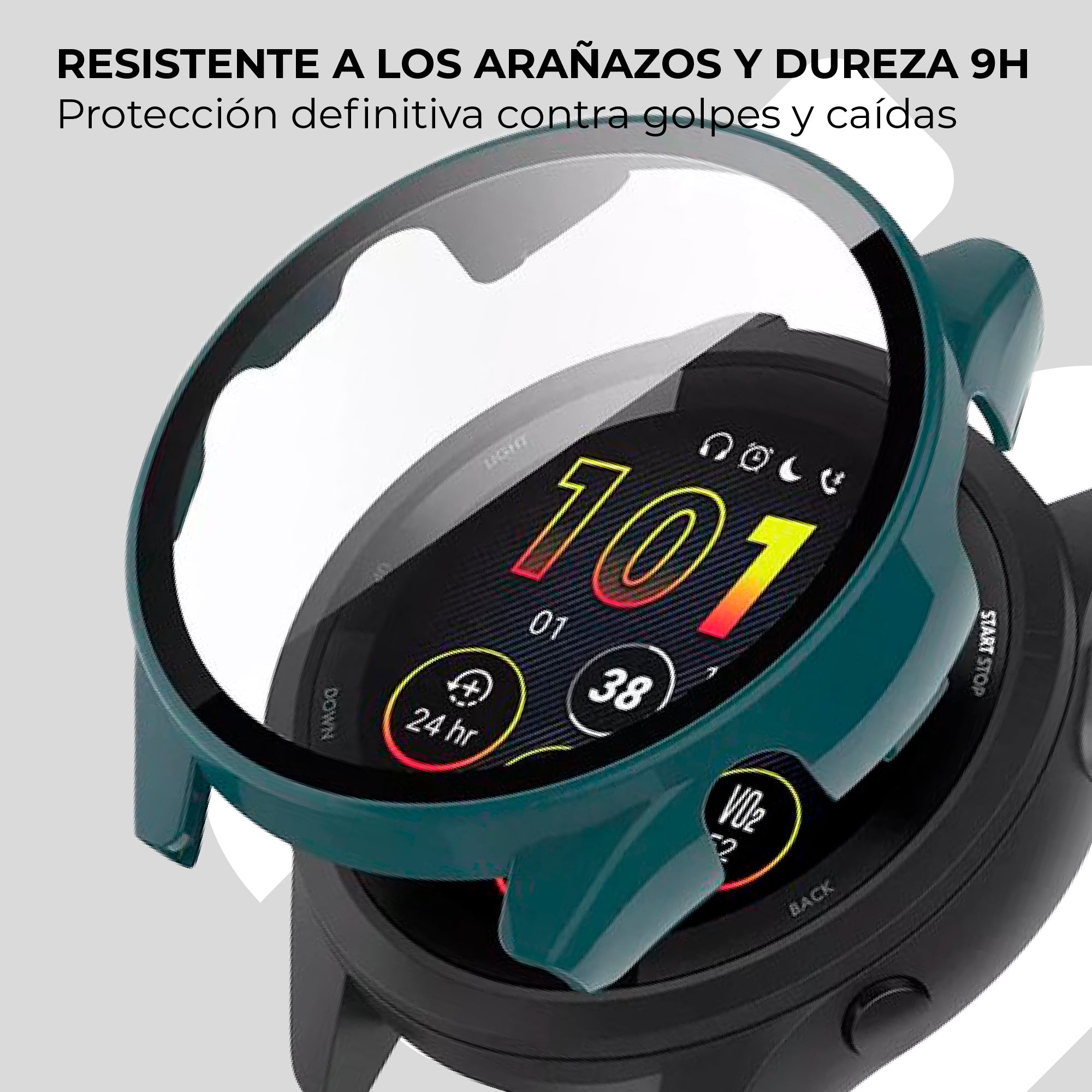 Funda rígida con vidrio Garmin Forerunner 265 (verde)