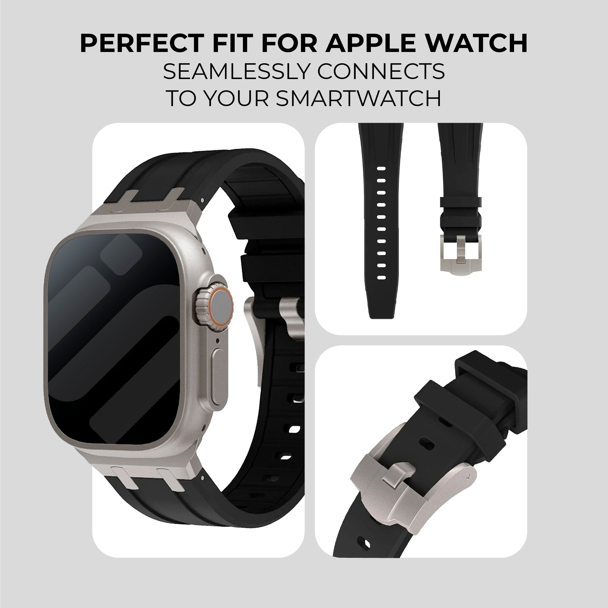 Apple Watch Luxury Liquid Silicone Strap (Black/Titanium)
