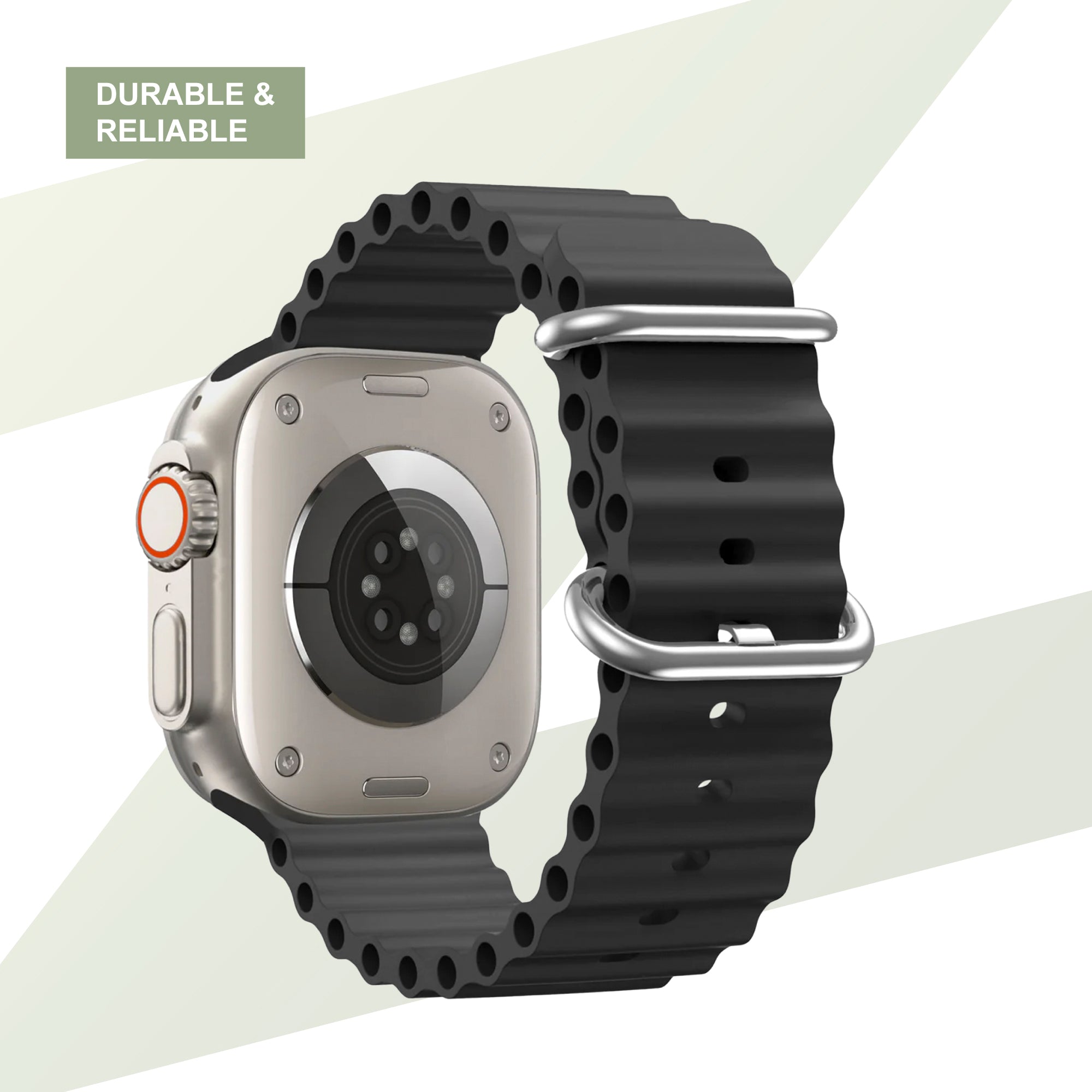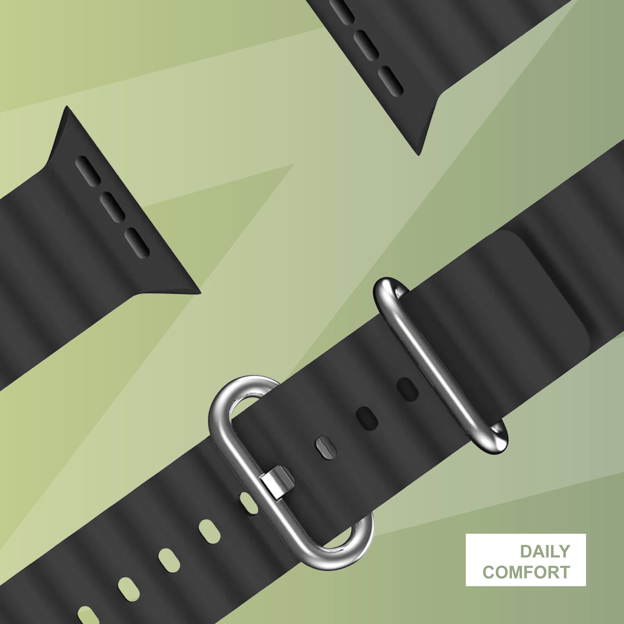 You secure the Ocean band with the metal buckle, so you can easily adjust the size to fit your wrist. The silicone material combined with the flexible design ensures that you can wear the band daily without irritation.