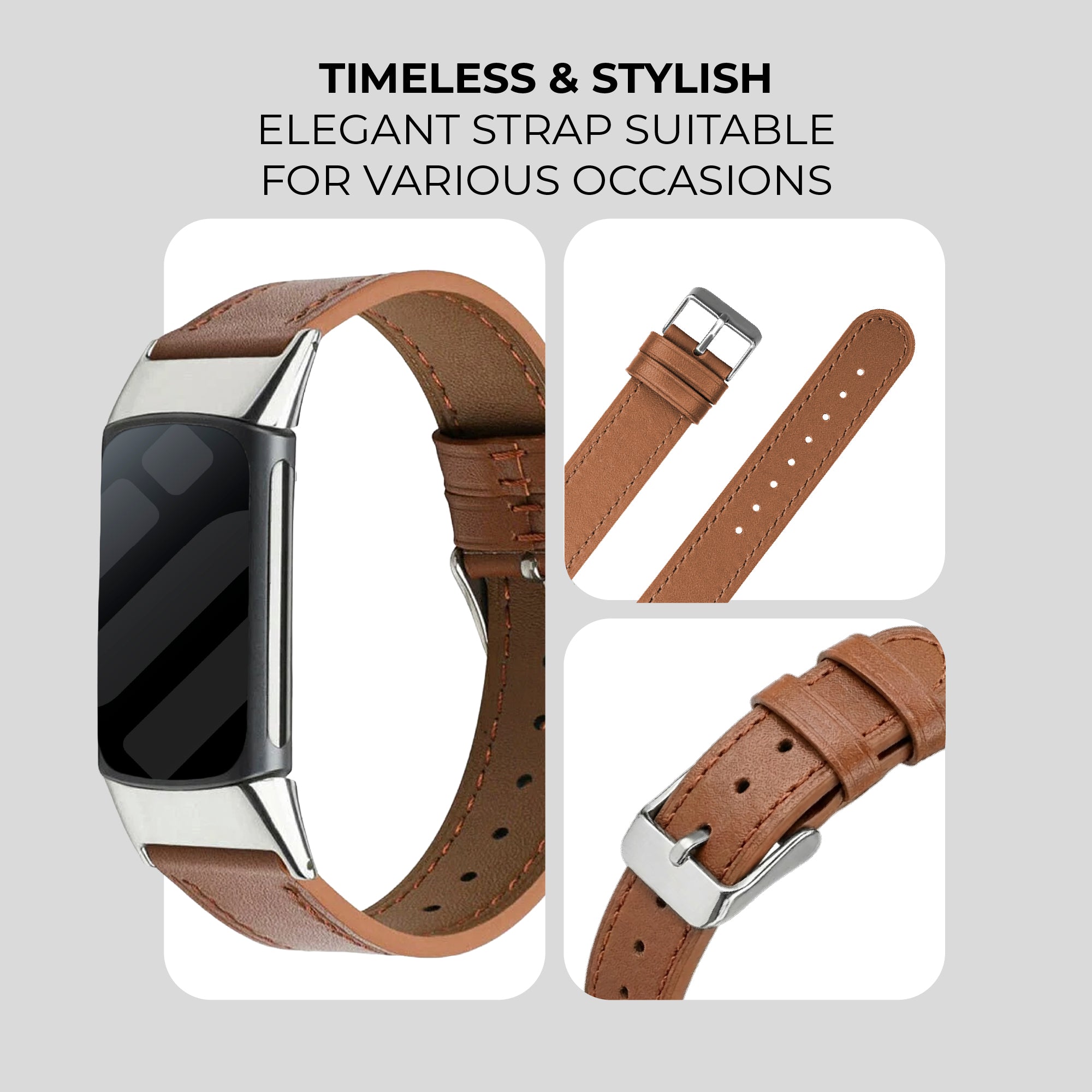 Fitbit Charge 6 Leather Strap (Brown)