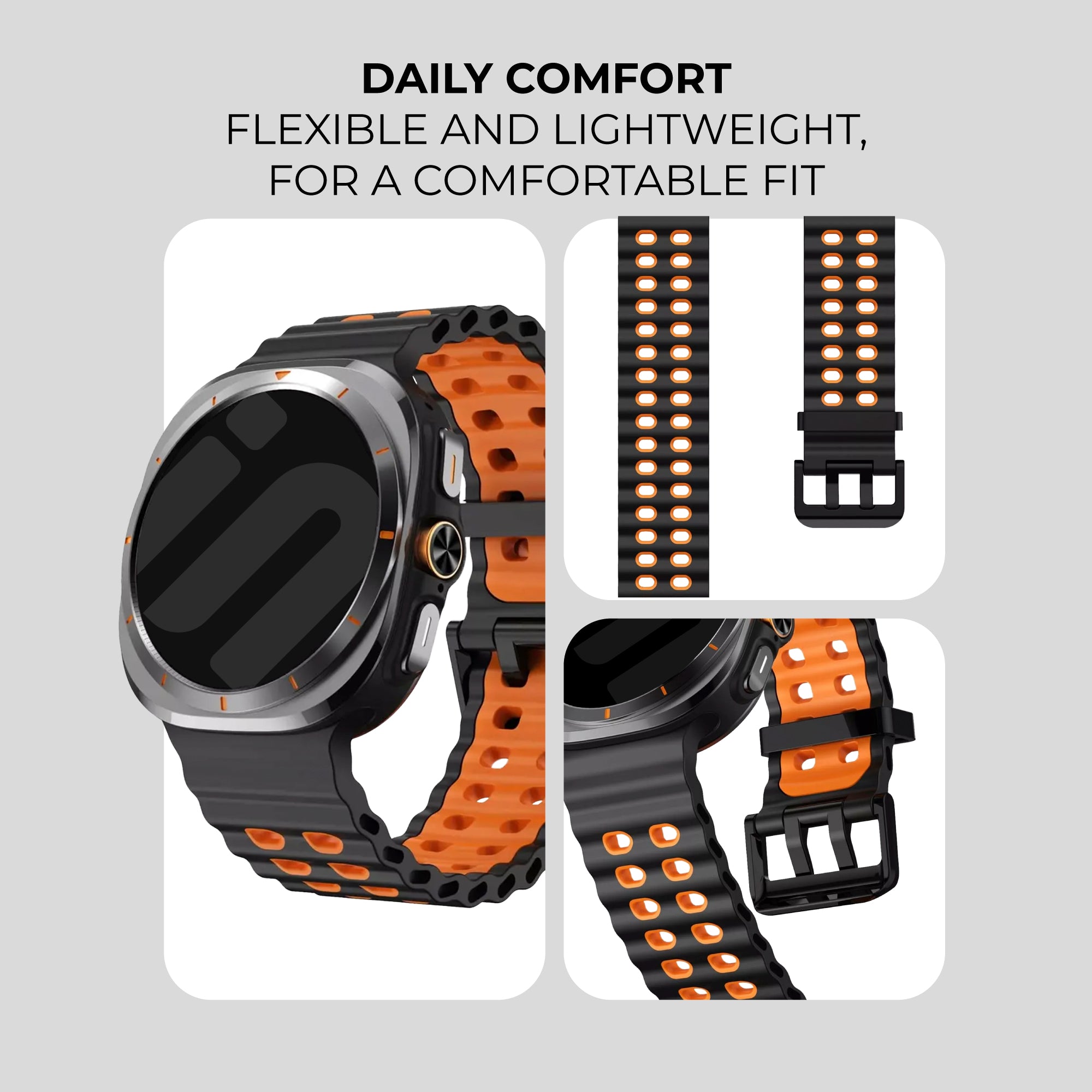 Samsung Galaxy Watch Ultra Wave Silicone Strap (Black/Orange)