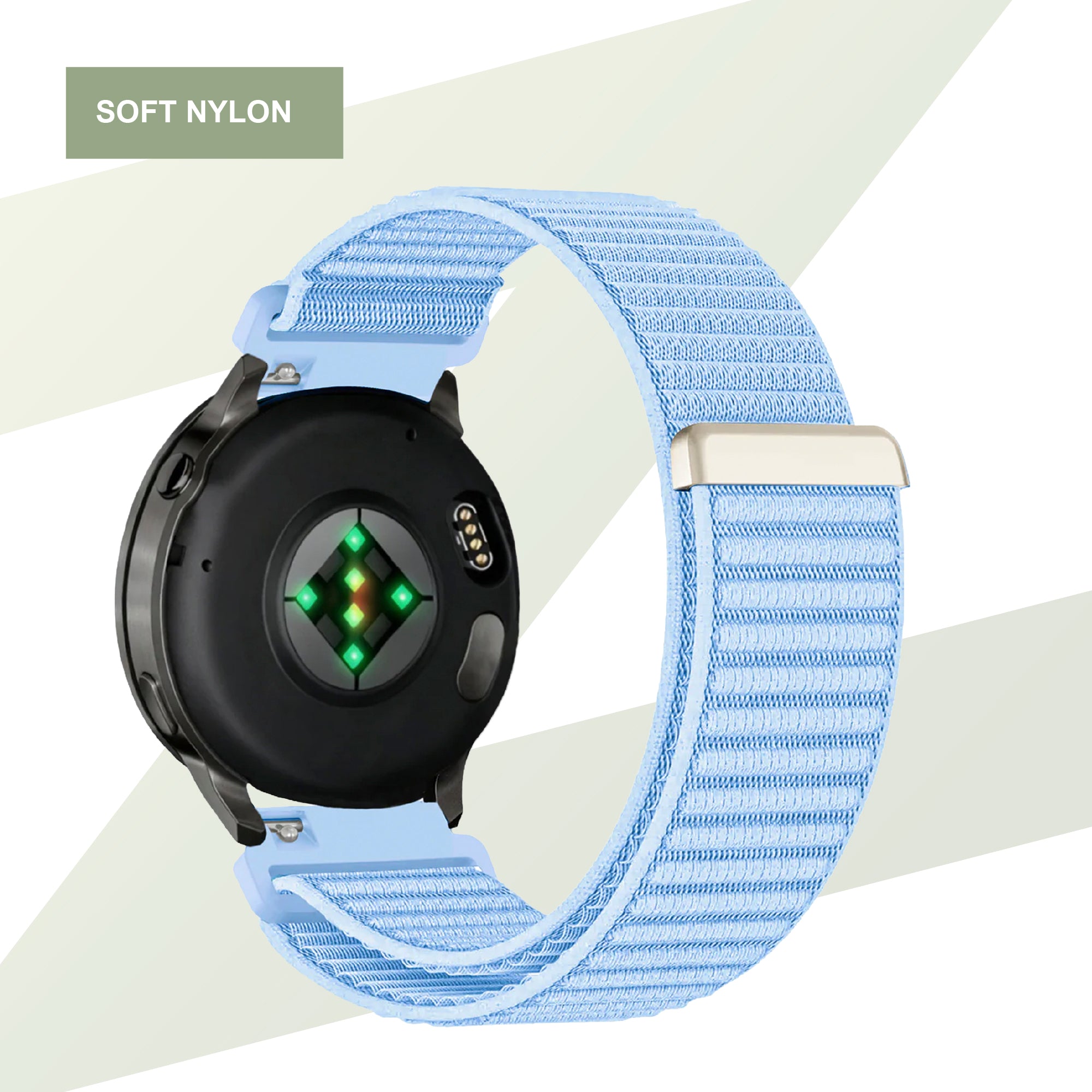 This nylon strap is suitable for almost all occasions due to its features. Its soft finish makes this the band to have on your wrist every day. They can be used for sports, although we recommend our genuine sports bands for this.