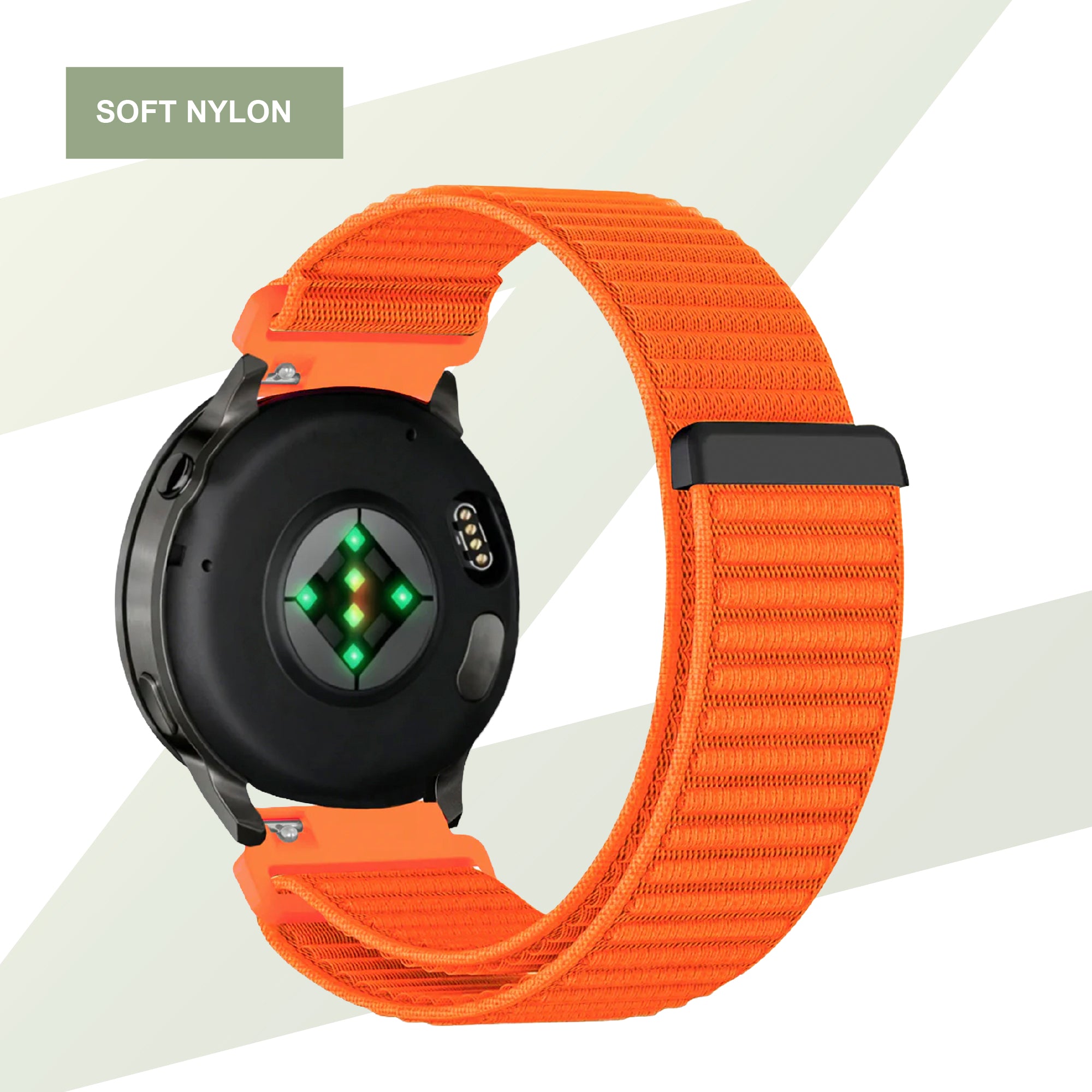 This nylon strap is suitable for almost all occasions due to its features. Its soft finish makes this the band to have on your wrist every day. They can be used for sports, although we recommend our genuine sports bands for this.
