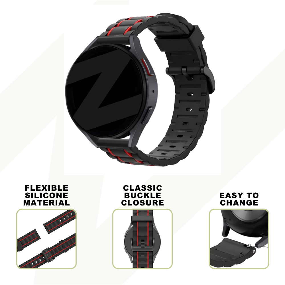 Silicone is a great material for watch straps, because it's very durable and water- and sweat resistant. This means they are very versatile straps, being suitable for daily wearing and sports or swimming.